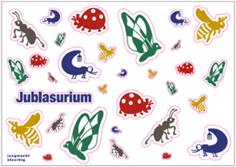Mit dem Stickerbogen bringst du das Jublasurium überallhin: Insektenmotive kombiniert mit dem Jublasurium-Schriftzug im handlichen A5-Format. Mach die Insekten sichtbar, kleb sie auf deine Sachen und verteile so Freude am Jublasurium – ob in der Jubla oder im Alltag.
